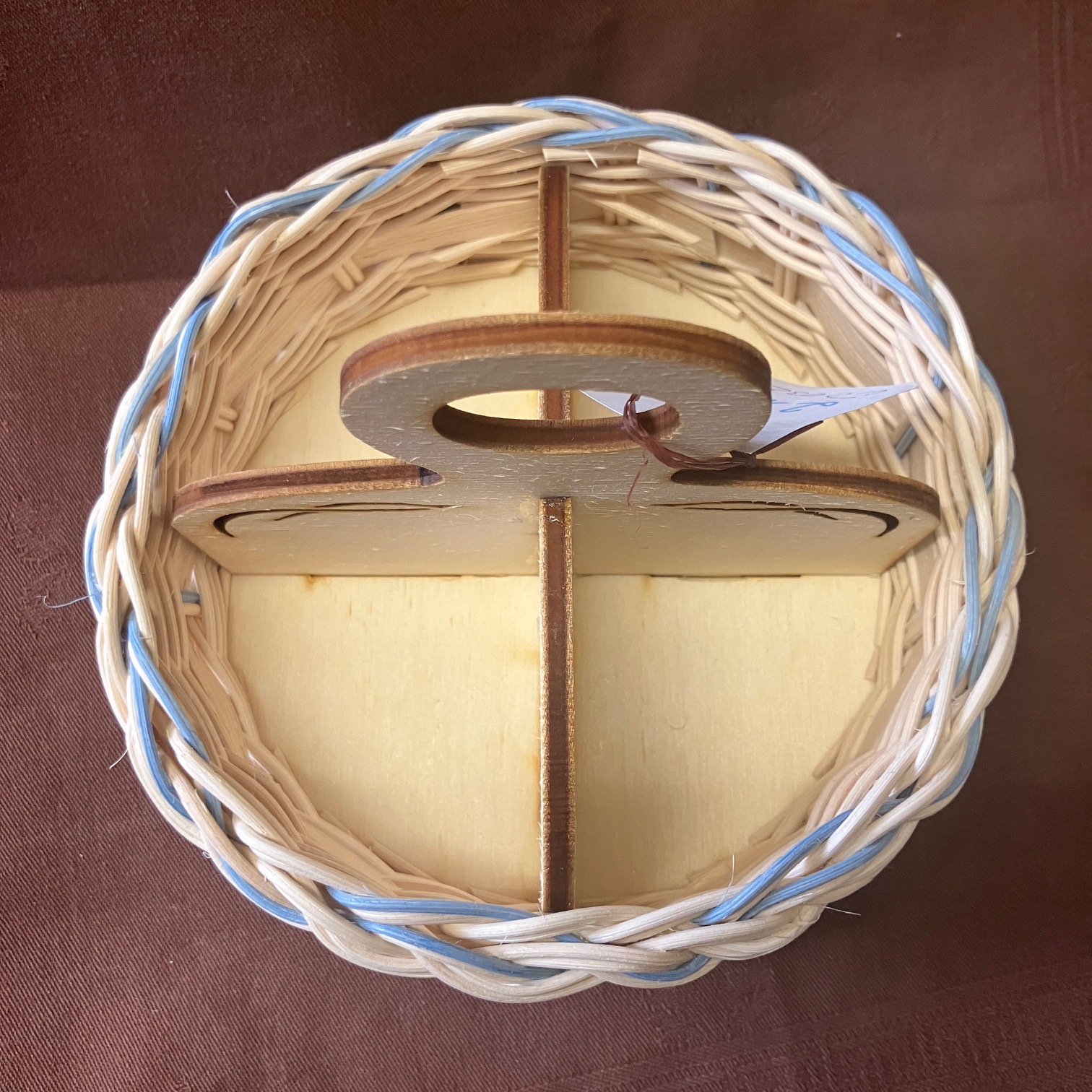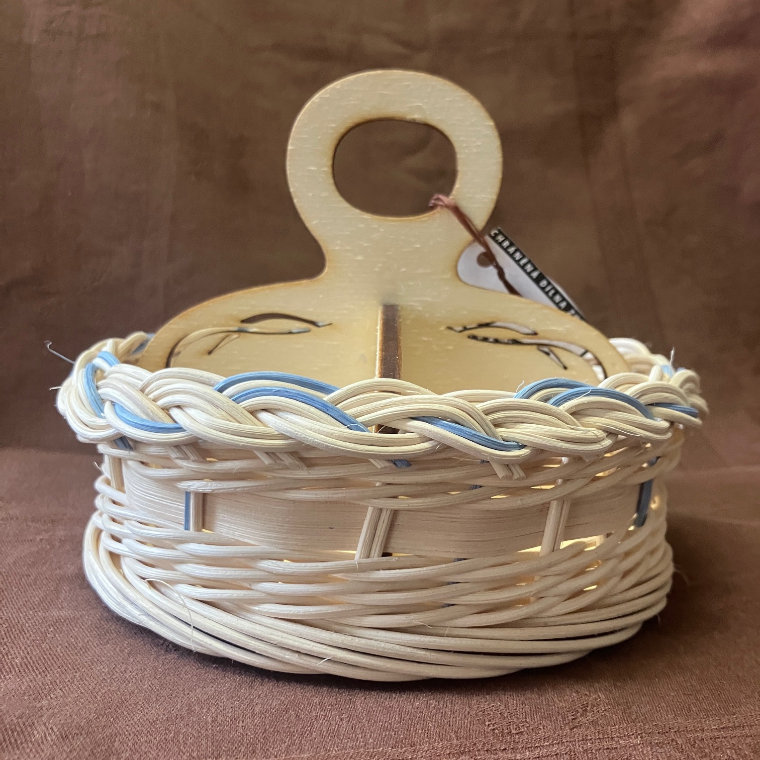 Čajovník přírodní s modrým dekorem a přírodní šénou, rozměry: 16 x 13.