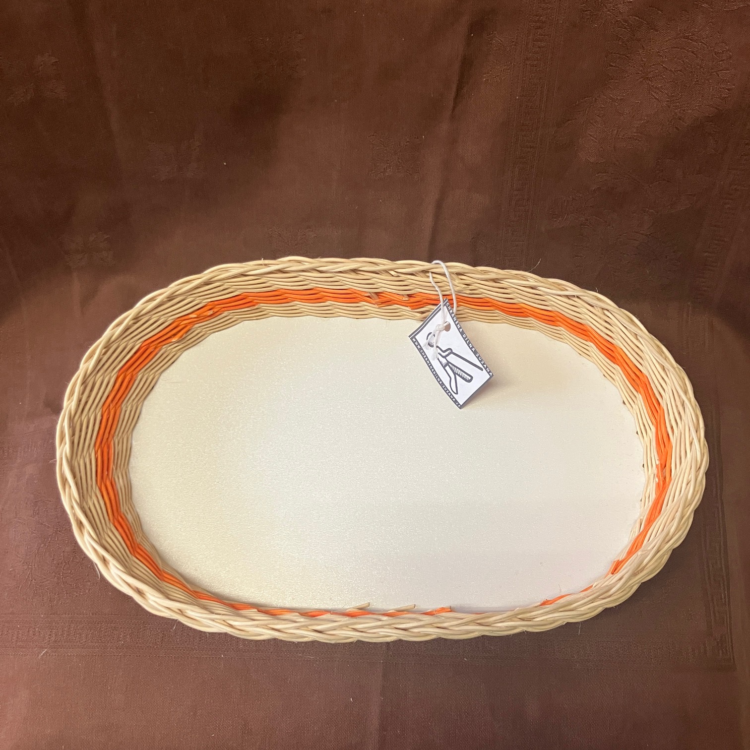 Tác malý přírodní s oranžovým dekorem, rozměry: 33 x 20 x 6,5.
