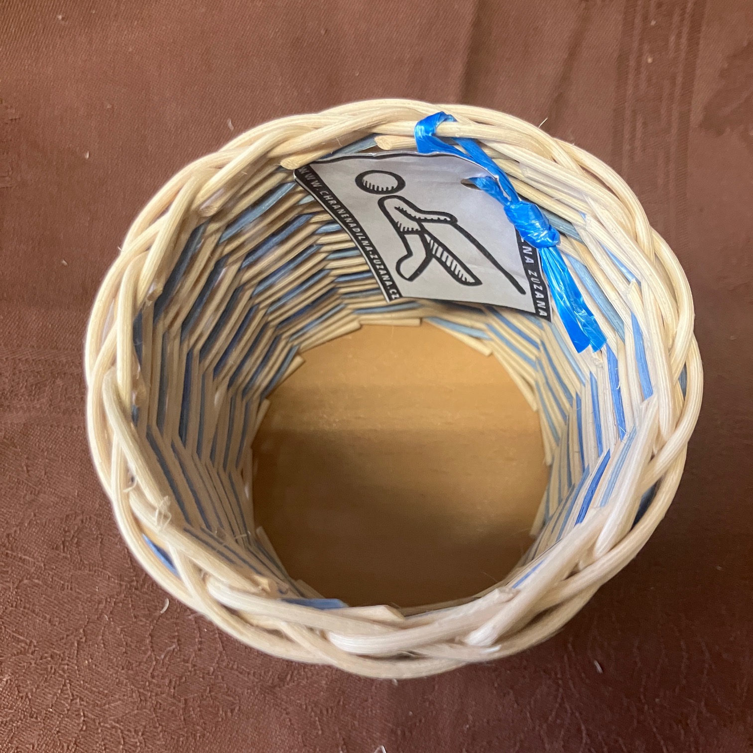 Tužkovník přírodní s modrým dekorem, rozměry 9 x 10.
