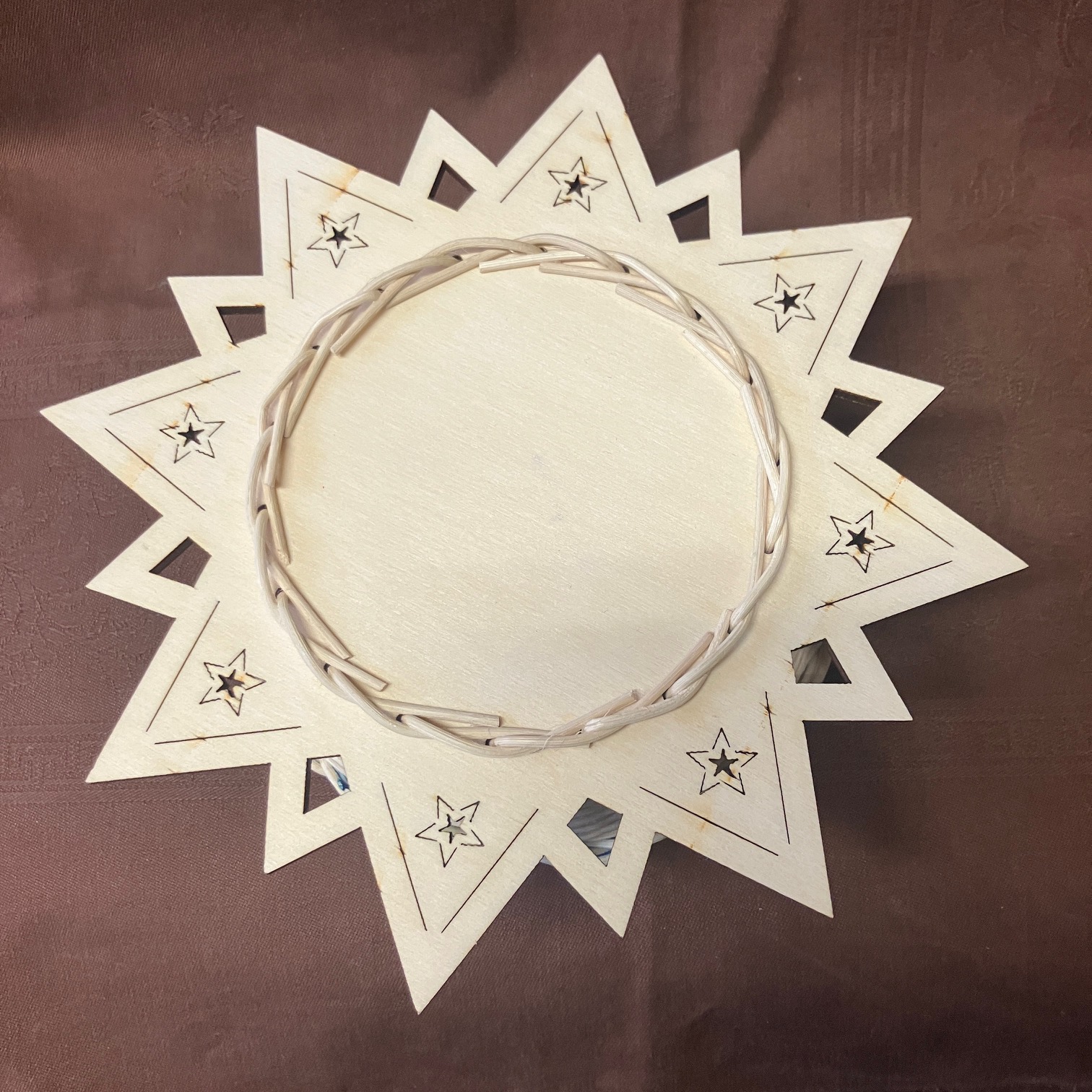 Ozdobné dno je z topolové překlížky ve tvaru hvězdy. Rozměr: 22 x 7.